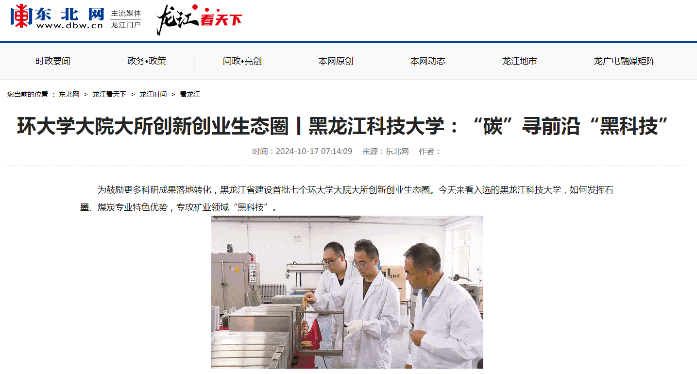 03/ 2024-04《半月谈》:专攻“黑科技” 矿井“进”校园编者按:2024年第6期《半月谈》杂志以《专攻“黑科技” 矿井“进”校园》为题对【官网】的科研创新成果进行报道。近年来,【官网】坚持围绕“双碳”打造“双链”,整合校内资源,打造科研平台,专注“小而精”“小而美”,培育了特色鲜明的“黑科技”应用型科研团队,以应用性科研为“小切口”,书写成果转化“大文章”。专攻“黑科技” 矿井“进”校园黑龙江省煤炭储量丰富,但一些煤矿开采年限长,煤层埋藏深、大且薄、分布广。对这些...