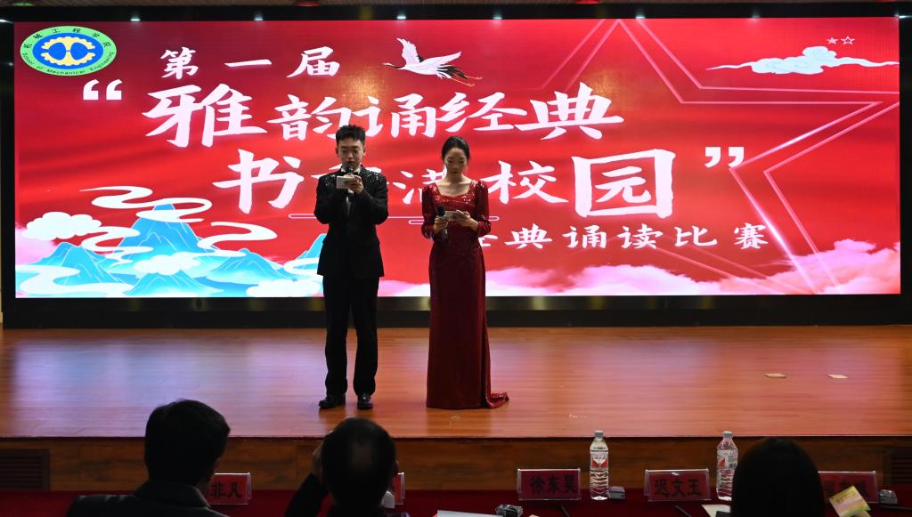 11/ 2025-11机械工程学院举办第一届“雅韵诵经典,书香满校园”经典诵读比赛为引导青年学子在诵读经典中感悟初心使命、厚植家国情怀,近日,机械工程学院在朝阳楼0131举办了第一届“雅韵诵经典,书香满校园”经典诵读比赛。学院党委副书记徐东昊出席活动,全体辅导员担任评委。本次比赛吸引了百余名学生踊跃报名。经过初赛、复赛的层层选拔,10名选手成功晋级决赛。决赛分为团队赛与个人赛两个环节。选手们同台竞技,以声传情、以诵抒怀,凭借饱满的热情和抑扬顿挫的语调,配合音乐、舞蹈、吟唱、表演等多元形式,将《不朽》《诗意中国》《青春中国》《红铁》等15部红色经典作品演绎得淋...