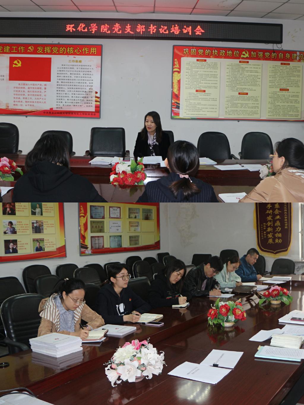 28/ 2021-04环化学院召开党支部书记专题培训会为提高党支部的战斗堡垒作用,全面提高环化学院党建工作质量,推动党史学习教育纵深开展,4月27日下午,环化学院党委书记苗雨为学院全体党支部书记进行了党务基本知识专题培训。培训会上,苗雨围绕学校组织部基层党建工作检查“回头看”反馈意见等相关工作作出安排和部署,要求全体党支部建立好台账,如期做好整改工作。并强调了紧扣新时代党的建设总要求的具体举措,一是通过聚焦“政治功能要强”、突出“支部班子要强”、围绕...