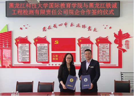 31/ 2021-05国际教育学院与黑龙江铁诚工程检测有限责任公司签署院企合作协议5月28日下午,国际教育学院与黑龙江铁诚工程检测有限责任公司在科技大厦高层0711会议室成功举行院企合作签约仪式。学院党委书记齐秀强、院长母丽华、党委副书记徐海英、副院长杨兆楠,公司党工委书记夏传江、党工委副书记王津博、总工程师杜春瑞、副经理魏贤春、人力资源部部长杨乐乐、计划合同部部长刘彤出席本次仪式。齐秀强对公司一行的到来表示热烈欢迎。院长母丽华介绍了学校的基本情况,她指出:院企合作既能发挥学校和企...