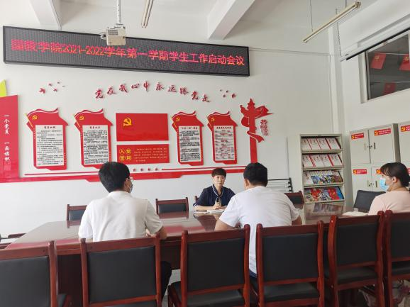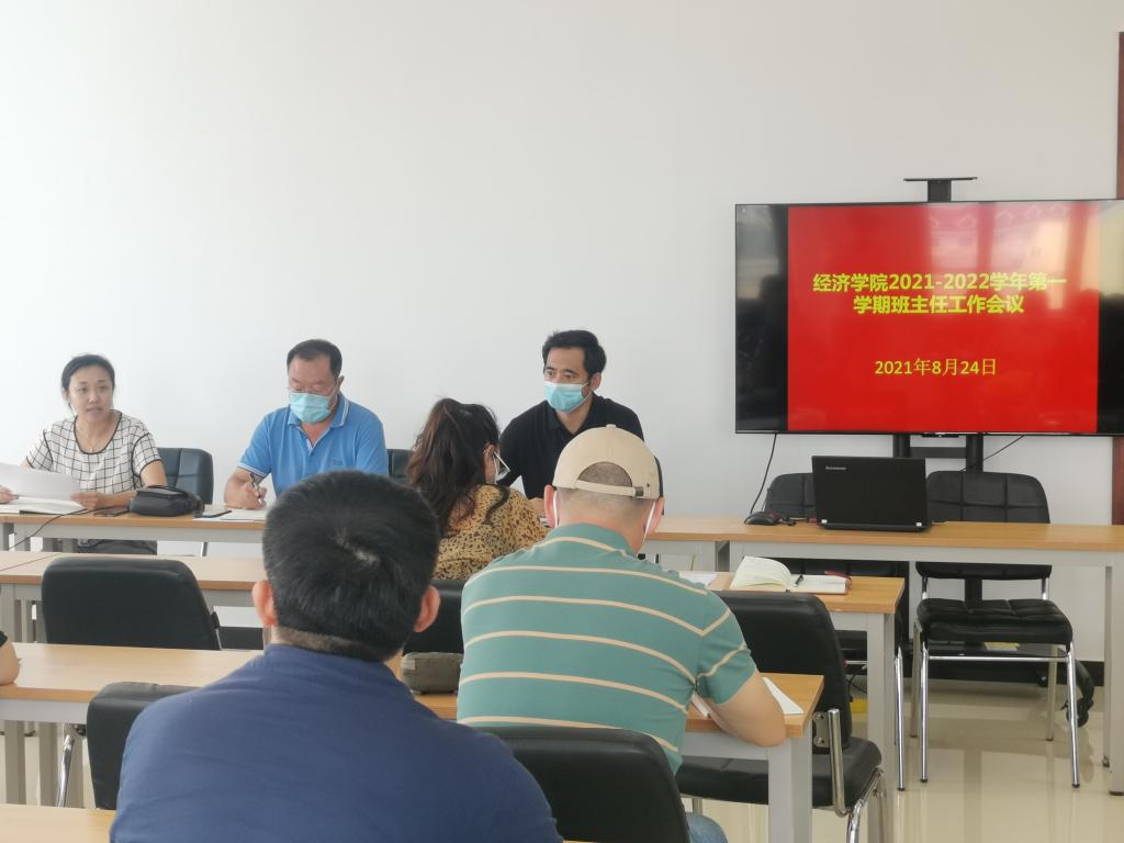 25/ 2021-08经济学院召开2021-2022学年第一学期班主任工作会议按照学校总体工作部署,结合当前学生工作实际,为进一步加强常态化疫情防控下学生日常教育管理服务,确保开学启动各项工作有效传达和落实,8月23日下午,学院按照疫情防控相关要求以线下线上相结合的形式召开了新学期班主任工作会议,学院党委书记张德本、学院党委副书记邬丽群、全体辅导员、班主任参加了会议,会议由陈美玲主持。会上,全体辅导员就分管工作将疫情防控、心理健康排查、首周教育、学风预警、寝室调整、综合测评...
