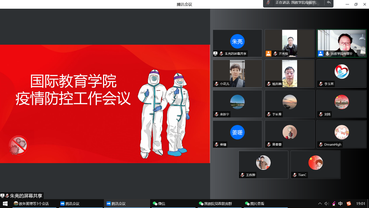 17/ 2022-03【同心战“疫”】国际教育学院召开疫情防控工作会议为贯彻落实好学校疫情防控工作部署会议精神,进一步安排、部署学院疫情防控有关工作,协调、统筹疫情防控和学院近期教学、学生日常管理、毕业生就业等工作,国际教育学院于3月16日19:00以线上方式召开了学院疫情防控工作专题会议。学院领导班子成员、办公室和教务工作人员、学生辅导员、各党支部书记、各教研室主任等参加会议。会议由学院党委书记齐秀强主持。会上,齐秀强首先传达了3月16日下午学校召开的疫情防控工作部署会...