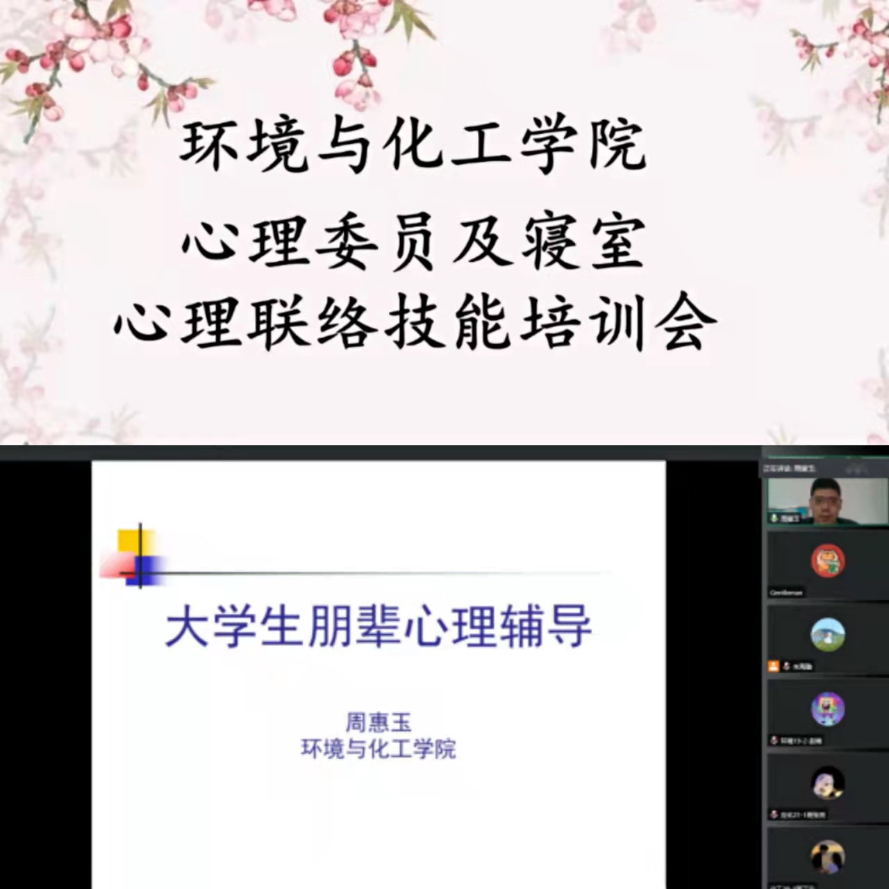 22/ 2022-03【同心战“疫”】环化学院开展疫情下“四维”守护心灵心理健康教育系列活动疫情背景下的线上教学模式日益成为常态,为在新形势下开展好大学生心理健康教育,环化学院积极探索开展了疫情下的“四维”守护心灵心理健康教育系列活动,全方位守护学生平安健康生活。一是构建培训之维,提高防范化解心理危机本领技能。学院高度重视心理朋辈力量的重要作用,注重培养主要学生干部、心理委员、寝室心理联络员在大学生心理健康教育的引领性,切实健全心理危机“四级”预防机制。3月11日,学工办主任、心理学博士...