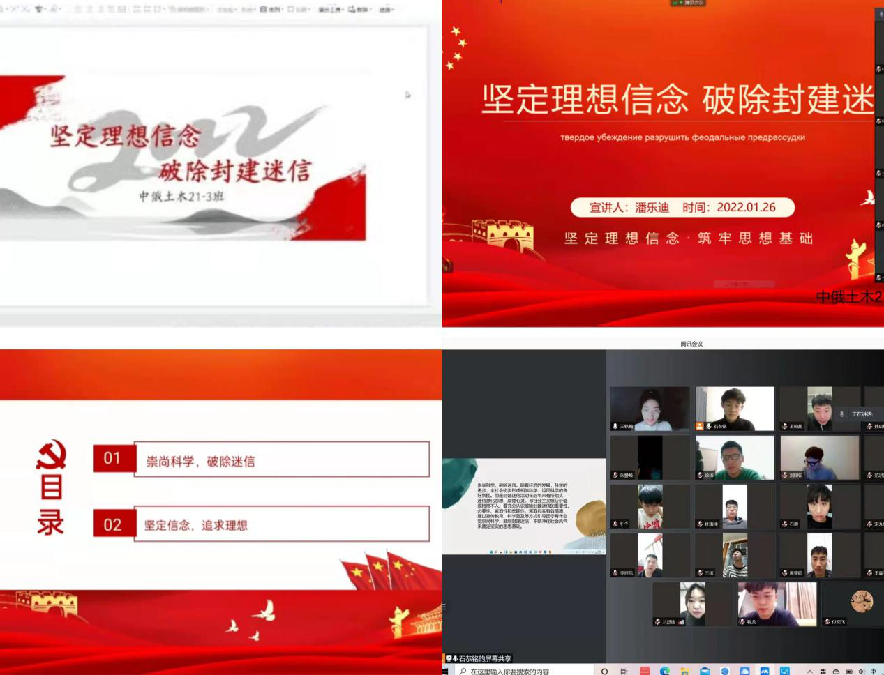 23/ 2022-03国际教育学院开展“除陋习、树新风”主题教育活动为深入贯彻落实黑龙江省疫情防控工作会议和关于加强乡风文明建设、持续深入推动移风易俗的指示精神,引导青年学生们摒弃陈规陋习,树立文明乡风,防止新冠肺炎疫情传播扩散,营造倡导文明新风的良好氛围。国际教育学院在青年学生中有计划、分层次地开展“除陋习、树新风”系列教育活动。一、以精神之钙破除迷信之风为弘扬社会主义核心价值观,进一步加强青年团员思想教育,引领广大青年学生崇尚科学、反对邪教,学院开展了以“...