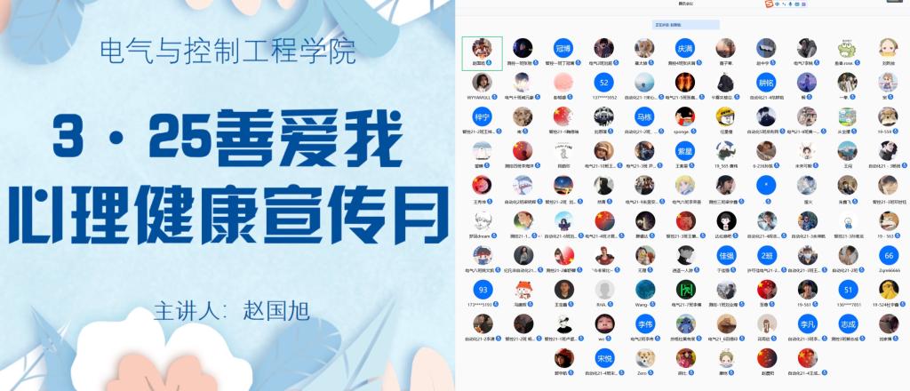 01/ 2022-04电气与控制工程学院圆满完成“3·25善爱我”心理健康宣传月活动按照学校《“3.25善爱我”心理健康宣传月活动方案》相关要求,为做好校园封闭静态管理期间学生心理健康工作,电气学院在遵守疫情防控要求的情况下,于3月9日-3月25日开展“3·25善爱我”心理健康系列活动,并获得了学生的广泛响应。一、加强心委培训,强化责任意识3月9日,电气学院利用腾讯会议线上召开心理委员、寝室心理联络员培训会,培训会由心理辅导员赵国旭主持,电气学院全体心理委员、寝室心理联络员参加会议。会上,赵...