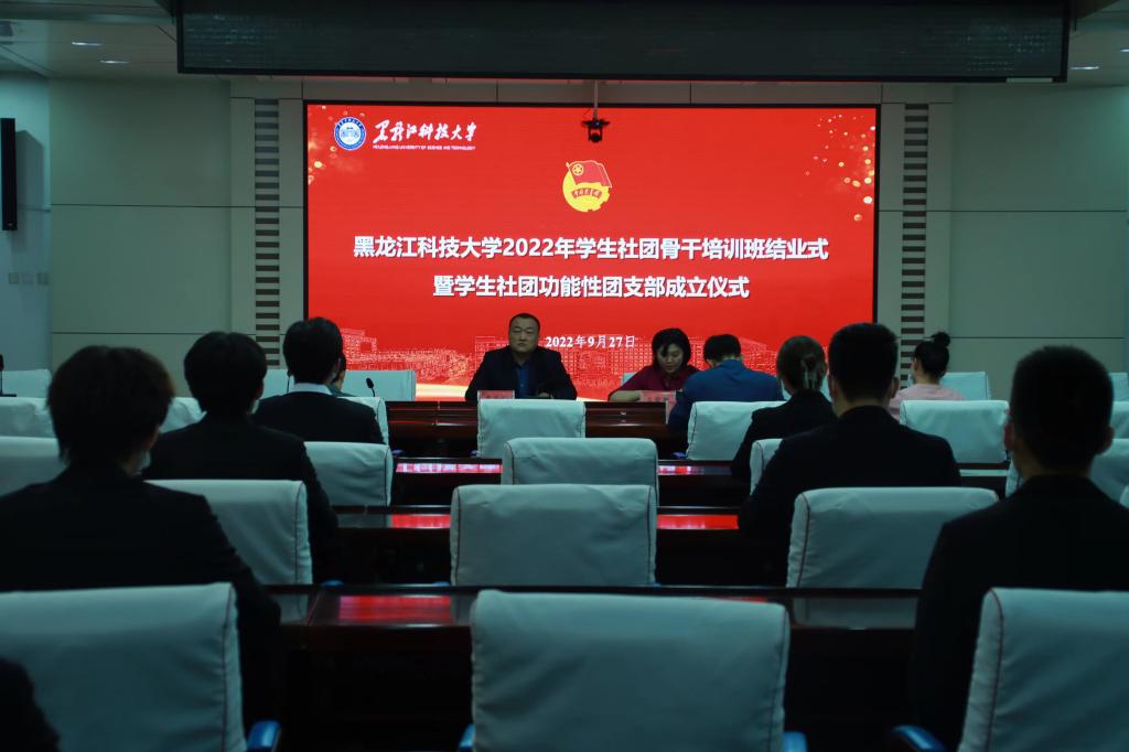 28/ 2022-09【官网】举办学生社团骨干培训班结业式暨学生社团功能性团支部成立仪式为进一步加强学生社团政治引领,推进学生社团管理规范化、科学化、制度化,结合【官网】2022年学生社团骨干培训班开展及建立学生社团功能性团支部工作的筹备情况,【官网】于9月27日举办了2022年学生社团骨干培训班结业式暨学生社团功能性团支部成立仪式,校团委全体工作人员和校团委直属学生社团骨干参加仪式。仪式上,培训班学员代表蒋睿同学作了交流发言;校团委副书记马紫微系统总结了培训班开展情况,详细介绍了建立学生社团功能性...