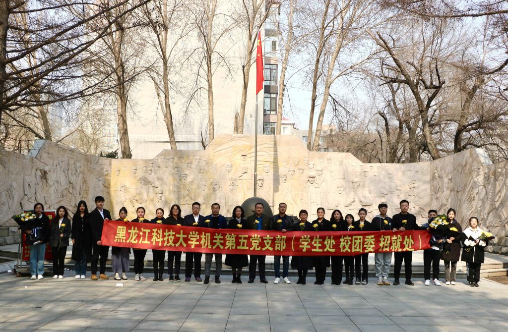 30/ 2023-03机关第五党支部开展“缅怀革命先烈 弘扬革命精神”主题党日活动为深入贯彻党的二十大精神,深刻领悟伟大建党精神,教育引导党员同志们继承革命先烈遗志,自信自强守正创新,踔厉奋发勇毅前行,3月29日下午,机关第五党支部带领支部党员和优秀学生代表前往哈尔滨烈士陵园开展“缅怀革命先烈 弘扬革命精神”主题党日活动。春风拂熙清明节,踏青戴柳念英烈。党员同志们怀着对革命先烈崇高的敬意和无限的哀思来到庄严肃穆的英雄烈士纪念碑前,清扫墓周,肃立默哀,面对党旗重温入党誓词,以铮铮...