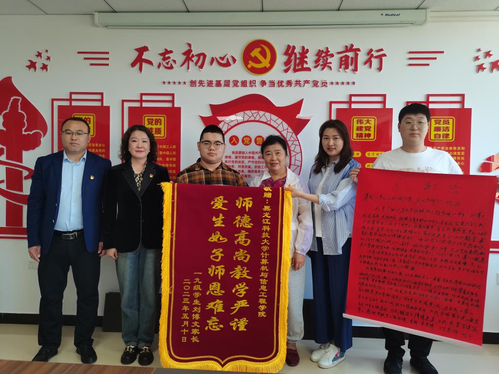 23/ 2023-05情谊暖人心 锦旗传谢意5月22日上午,计算机学院物联网2019级2班刘博文及家长将一面印有“师德高尚教学严谨 爱生如子师恩难忘”的锦旗和手写感谢信送到计算机学院,感谢学院及老师们在大学四年期间无微不至的关怀和照顾。物联网2019级2班刘博文,先天残疾,从小患有脑瘫,肢体行动不便,缺少平衡能力,生活方面需要别人的照顾。2019年,刘博文怀着忐忑的心情步入大学校园,加入计算机学院大家庭。入学后老师和同学们的热情和悉心照顾打消了他和家长的...