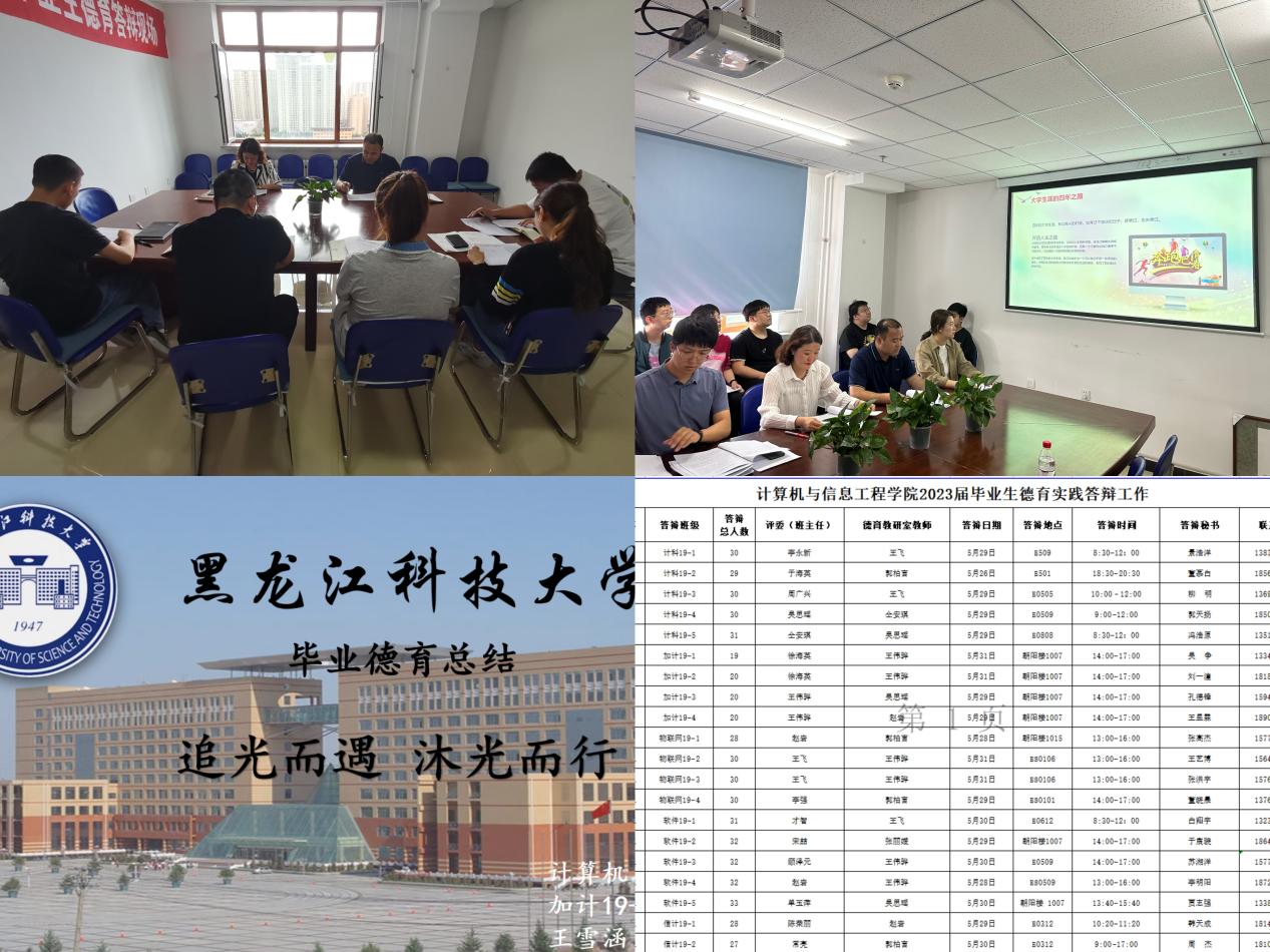 07/ 2023-06计算机学院圆满完成2023届毕业生德育实践答辩工作按照学校关于在2023届本科毕业生中开展德育答辩工作的相关要求,结合“一院一品”——德育实践八项工程工作的推进,计算机学院于开学初启动“德育实践八项工程”系列之“实施德育实践考评工程”。学生工作领导小组讨论制定了《计算机与信息工程学院关于2023届本科毕业生德育答辩工作实施方案》,3月24日-29日学院组织开展德育实践总结论文的开题工作,全院560名毕业生经审查合格同意开题进入撰写阶段。5月初,全体班主任组织本...