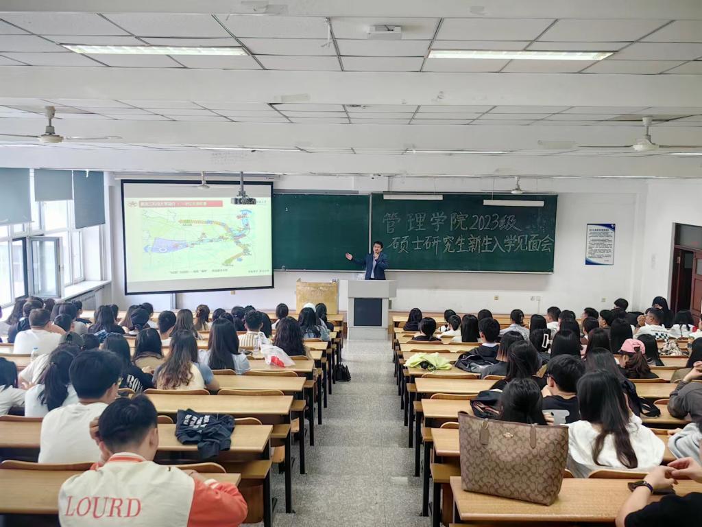 04/ 2023-09管理学院举行2023级研究生新生见面会暨入学教育动员大会为做好研究生新生入学教育工作,强化思想引领、规范教学管理,引导新生尽快适应研究生生活,顺利转变身份角色,9月1日下午,管理学院召开了研究生新生见面会暨入学教育动员大会,院长洪亮、副院长张倩、各专业研究生秘书和2023级全体研究生参加了此次活动。大会由副院长张倩主持。会上,洪亮对2023级研究生加入管理学院大家庭表示热烈欢迎和由衷祝贺。接着,介绍了学校和学院的发展历程、学科专业建设、研究生培养、发展前景等...