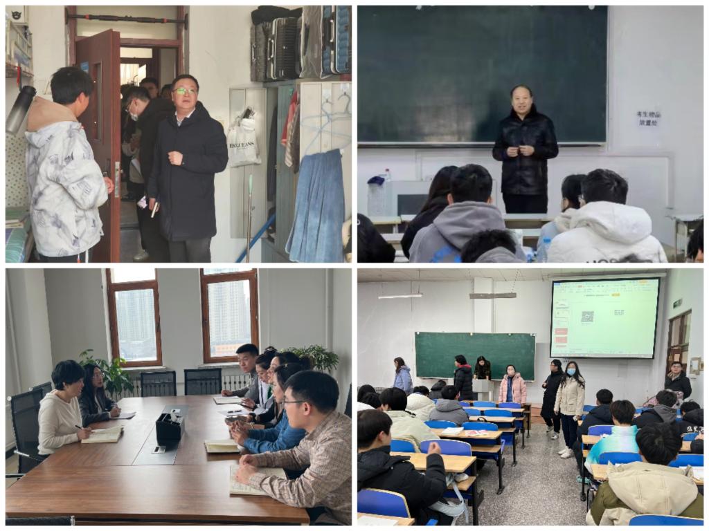 01/ 2024-03研究生学院全面做好2024年春季学期学生启动工作为推进新学期各项工作高效有序开展,全力为学生营造安全、文明、和谐校园环境,研究生学院高度重视、科学谋划、多措并举,通过宿舍走访慰问、召开班主任工作会议、学生干部培训会议等方式全面做好2024年春季学期学生启动工作。宿舍走访送温情,关怀备至暖人心2月25日晚,研究生学院党委副书记王伟强带领全体辅导员深入到学生寝室进行走访,与同学们亲切交流,询问寒假生活、学习情况、就业进度,重点走访了15公寓学生,查看了寒...