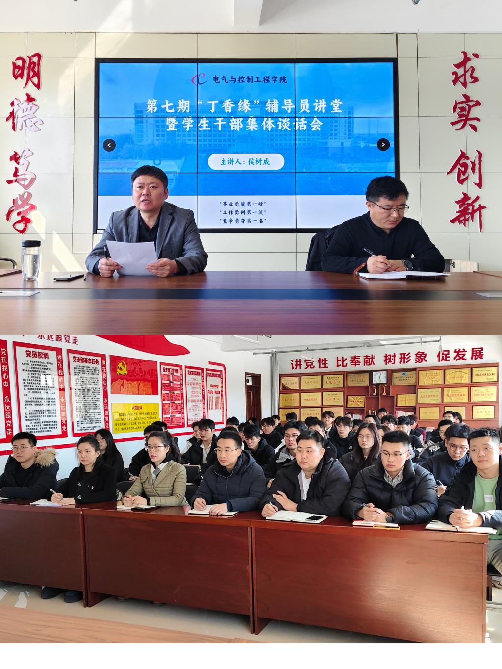 08/ 2024-03电气学院组织开展第七期“丁香缘”辅导员讲堂暨学生干部集体谈话会为加强辅导员队伍建设,提升辅导员职业能力,精准把握青年大学生思想特点,不断提高思想政治教育工作的针对性和实效性,电气学院于3月6日中午在朝阳楼809组织召开第七期“丁香缘”辅导员讲堂暨学生干部集体谈话会,学院党委副书记侯树成、全体辅导员和各团学组织骨干学生干部参加会议,会议由副处级辅导员韩大伟主持。会上,侯树成全面回顾了学院2023年度学生工作取得的优异成绩,总结提出了学院“十大亮点”工作,并对全体辅导...