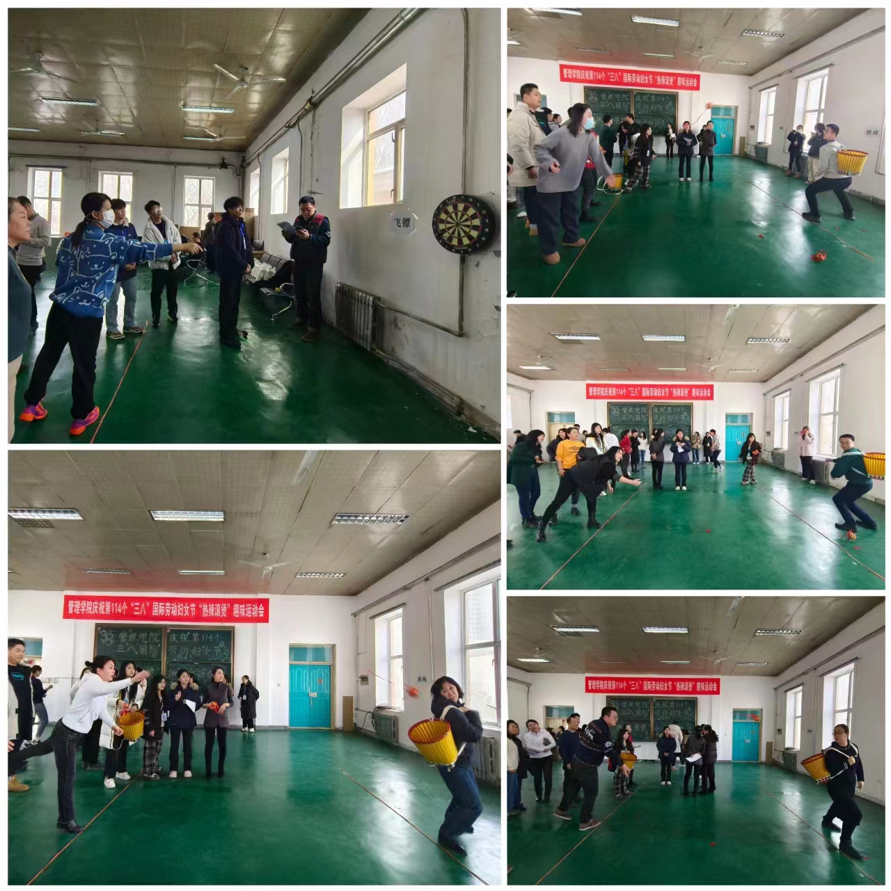 08/ 2024-03管理学院举办庆祝三八国际劳动妇女节“热辣滚烫”趣味运动会为庆祝第114个“三八”国际劳动妇女节,促进和谐校园建设,丰富学院教职工的精神文化生活,提升教职工的幸福感、归属感、认同感,进一步推动广大女教工阔步新征程、担当新使命,管理学院工会于3月7日下午在学院三楼活动室举办了庆祝三八国际劳动妇女节“热辣滚烫”趣味运动会。运动会前,学院工会主席徐海英代表学院向全院女教职工致以亲切的问候和节日的祝福,充分肯定了女教职工在学院各项工作中取得的优异成绩,并希望全体女...