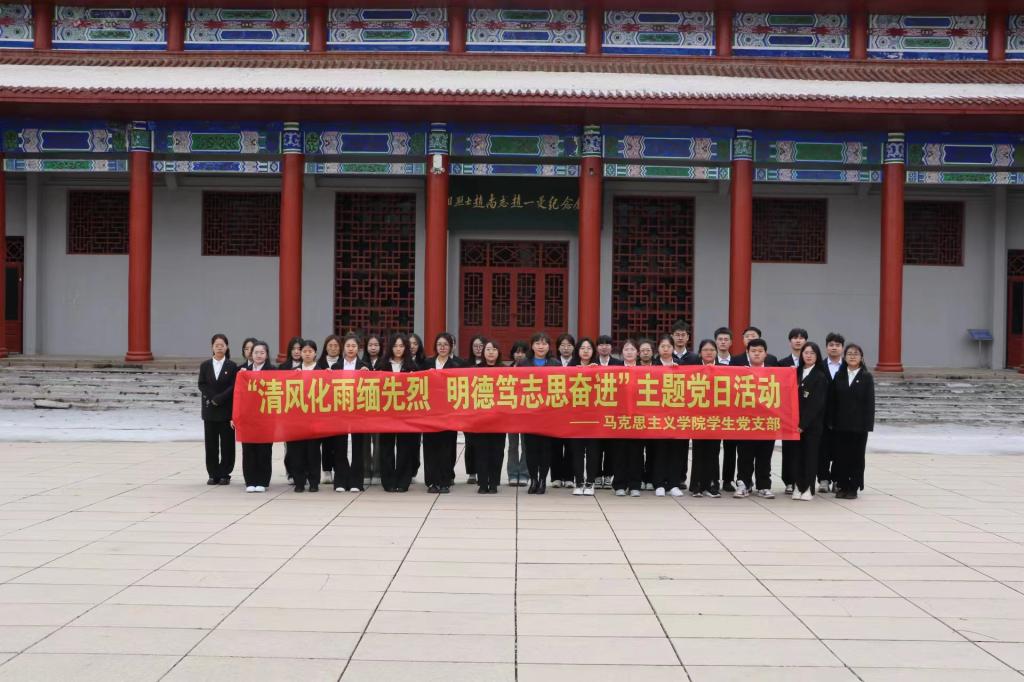 02/ 2024-04马克思主义学院学生党支部开展“清风化雨缅先烈 明德笃志思奋进”主题党日活动为加强师生党员的党性淬炼,赓续对党绝对忠诚的红色基因,深切缅怀革命先烈的丰功伟绩,传承弘扬英烈事迹和精神,争做崇尚、学习、捍卫英烈的表率。3月29日,马克思主义学院学生党支部前往尚志市革命烈士陵园开展“清风化雨缅先烈 明德笃志思奋进”主题党日活动。在前往尚志市革命烈士陵园的途中,学生党员向大家介绍尚志碑林、赵尚志、赵一曼纪念馆的简介概要,讲述赵尚志、赵一曼革命烈士在战火纷飞中的感人事迹,深刻领悟历...