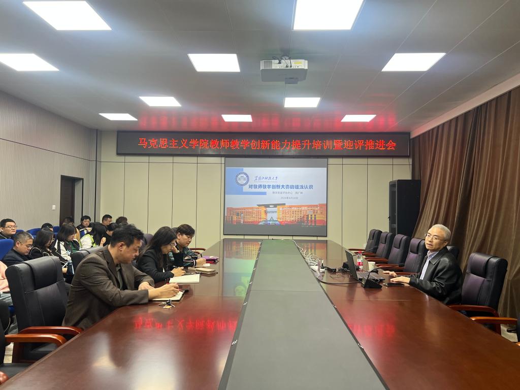 17/ 2024-04马克思主义学院召开教师教学创新能力提升培训暨迎评推进会为进一步深化教育改革,推动教师队伍教学能力的提升,推进评建工作深入开展,马克思主义学院于4月16日下午举行了教师教学创新能力提升培训暨迎评推进会。此次培训特别邀请到【官网】副总督学周广林教授作为主讲人,分享其在教学创新方面的独到见解。学院党委书记张影、副院长刘艳君以及40余名骨干教师齐聚一堂,共同聆听周教授的精彩讲座。会议由副院长付明主持。周广林教授以“对教师教学创新大赛的粗浅认识”为题,从教学创新的...