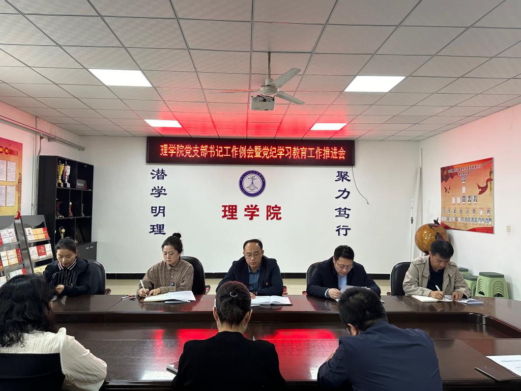 28/ 2024-04【党纪学习教育】理学院召开党支部书记工作例会暨党纪学习教育工作推进会为认真学习贯彻习近平总书记关于党纪学习教育重要指示精神,扎实开展好党纪学习教育工作,4月25日,理学院在二楼会议室召开党支部书记工作例会暨党纪学习教育工作推进会。学院班子成员、全体党支部书记、支部委员参加了会议。会议由党委书记贺龙军主持。会上,院长张向华传达了中共中央办公厅《关于在全党开展党纪学习教育的通知》精神,解读了党纪学习教育工作的主要安排,并对学院做好党纪学习教育落实工作提出了要求。党委...