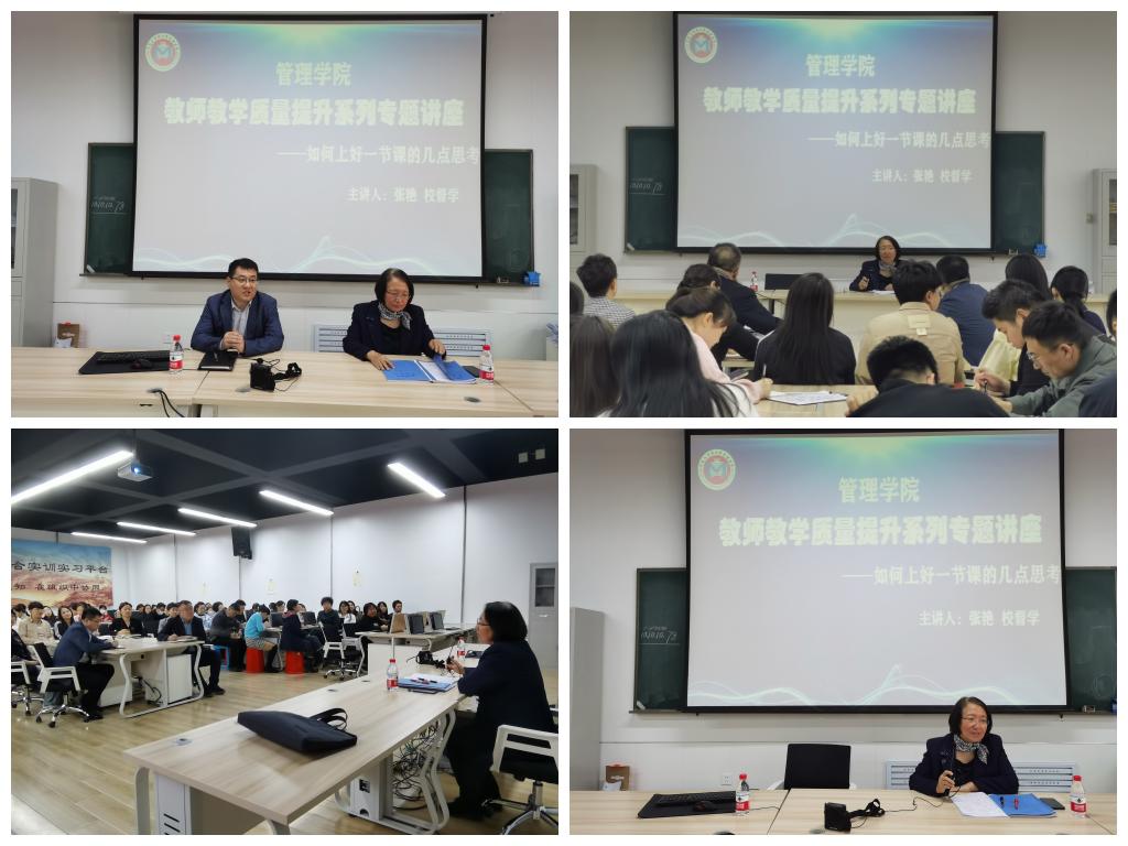 28/ 2024-04管理学院全面推进审核评估筹备工作 全方位助力青年教师教学质量提升为深入贯彻落实学校本科教育教学审核评估工作的相关部署和要求,推动全院教职员工勠力同心、奋楫笃行,高质量开展新一轮本科教育教学审核评估准备工作。开学以来,管理学院以学校“青博”教学能力提升计划为引领,进一步加强日常教学管理和督导听课,坚持以多种方式开展多层面的教育教学研讨交流活动,全面提升青年教师教学能力,帮助青年教师过好“教学质量关”。一、校院两级督导深入青年教师公开课课堂,为青年教师教学“把...