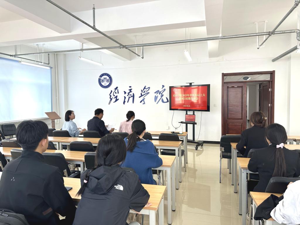 23/ 2024-05经济学院召开省级以上大创项目结题答辩会为培养大学生科技创新能力,营造良好的校园学术氛围,进一步推动学院科技创新工作,经济学院高度重视大学生创新创业教育工作,于5月22日在朝阳楼0501室举行“2023年省级以上大学生创新创业训练计划项目结题答辩会”。答辩会由学院党委副书记邬丽群、学工办主任陈美玲、科技协会指导教师李笑晗担任评委,此次结题的项目负责人参加会议。答辩会上,各项目负责人分别围绕研究背景、研究内容、创新亮点、研究成果等方面对项目进行结...