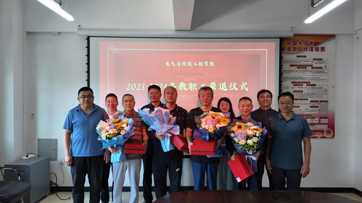 10/ 2024-09电气学院举行2023-2024年教职工荣退仪式值此第四十个教师节来临之际,电气学院于9月9日上午在朝阳楼0607举行2023-2024年教职工荣退仪式。学院领导班子成员和2023-2024年退休教职工代表郭松林、孙晓东、丁玉伟、吕雄飞出席了此次活动,活动由学院工会主席李忠勤主持。仪式上,学院领导向退休教职工致以崇高敬意和美好祝福,并赠送了鲜花和荣退纪念品。党委书记李鹏银在致辞中指出,退休教职工是学院十分宝贵的资源,希望各位退休教职工在享受退休生活的同时,常回学校...