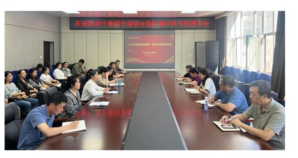 12/ 2024-09马克思主义学院开展庆祝第40个教师节系列活动为庆祝第40个教师节,大力弘扬教育家精神,9月10日下午,马克思主义学院在科技大厦二楼会议室召开庆祝第40个教师节座谈会暨师德师风专题教育会。学院领导班子、没课的教职工参加会议。本次座谈会以“大力弘扬教育家精神 勇担教育强国使命”为主题,集中学习了习近平总书记关于教育家精神的重要论述,传达了学校庆祝第40个教师节暨科技工作会议精神,共同观看了央视CCTV-4制作的《教育家精神》系列专题片之“心有大我 至诚报国”...