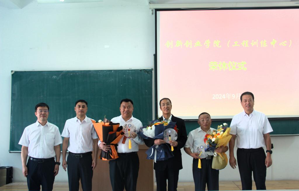 12/ 2024-09创新创业学院(工程训练中心)召开庆祝第40个教师节暨教师荣休和表彰大会为弘扬尊师重教文化,提高教职工获得感、荣誉感和幸福感,建立学院荣誉体系,激励全体教职工积极进取、团结奋进,学院于9月6日中午召开庆祝第40个教师节暨教师荣休和表彰大会,会议由副院长杨兆楠主持。会议为今年退休教师举行了荣休仪式,学科竞赛办公室魏战胜、工程训练基地葛升平、徐靖三位老师参加了荣休仪式。青年教师为老教师献上鲜花表达节日的祝福,学院领导为老教师颁发荣休纪念品,老教师分别上台发表感言,表达了对...