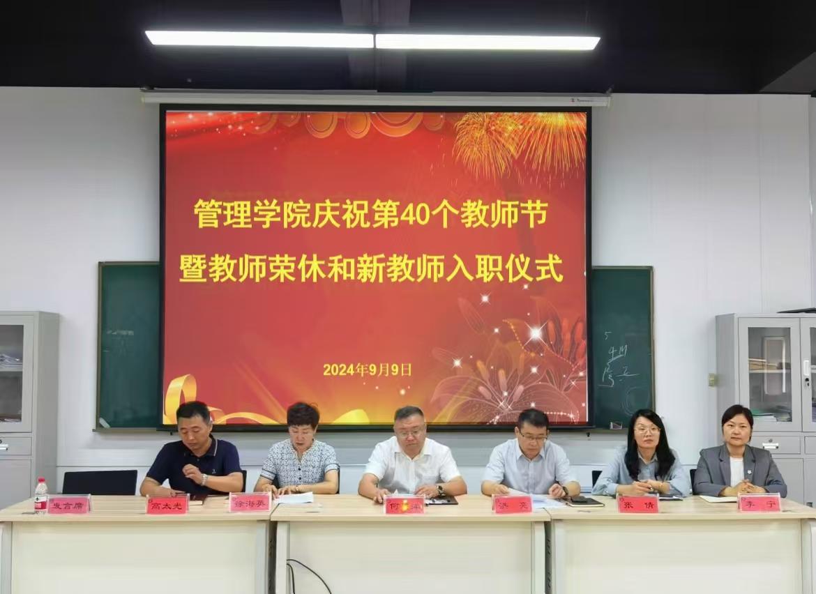 11/ 2024-09管理学院举办庆祝第40个教师节暨教师荣休和新教师入职仪式为深入学习贯彻落实党的二十届三中全会精神,进一步弘扬教育家精神,营造尊师重教的浓厚氛围,激励广大教师积极投身教育强国建设实践。9月9日,管理学院举办庆祝第40个教师节暨教师荣休和新教师入职仪式。学院领导班子成员和全体教职工共同见证了这一温馨时刻。仪式由学院党委副书记徐海英主持。会议伊始,全体教师共同观看了由学院学生和教师代表创作的教师节献礼短片《老师,您好!》。随后在老教师荣休仪式环节,院长洪亮代表学院致辞,对宋彧、柴方营、董国萍三位荣休教师致以崇高敬意和诚挚祝福,高度肯定并衷...