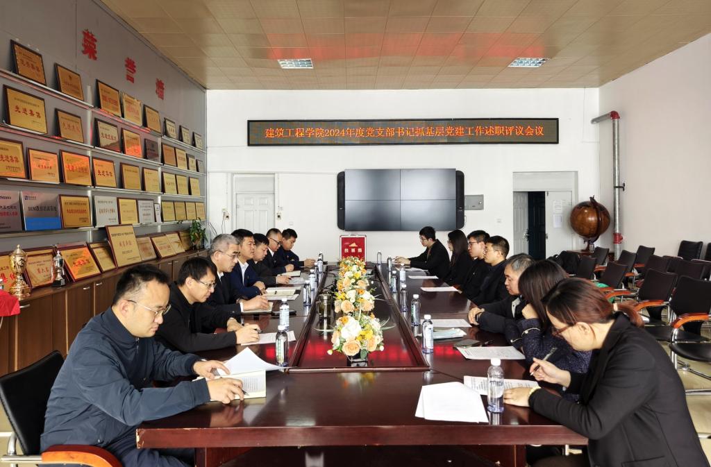 31/ 2024-12建筑工程学院召开2024年度党支部书记抓基层党建工作述职评议大会为全面贯彻落实学校党委党建工作要求,强化落实党支部书记在支部党建工作中的“第一责任”,12月31日上午,建筑工程学院党委召开2024年度党支部书记抓基层党建工作述职评议大会。会议由学院党委副书记展跃主持,学院党委委员、各党支部书记参加此次会议。会上,各党支部书记聚焦个人履职、党支部规范化建设、巩固拓展主题教育成果、扎实开展党纪学习教育、推动党建业务深度融合、发挥基层党组织战斗堡垒作用等方面依次展开述职,全面总结汇报了党支部一年来开展的各项工作,同时查摆支部工作存在的问题与不足,...
