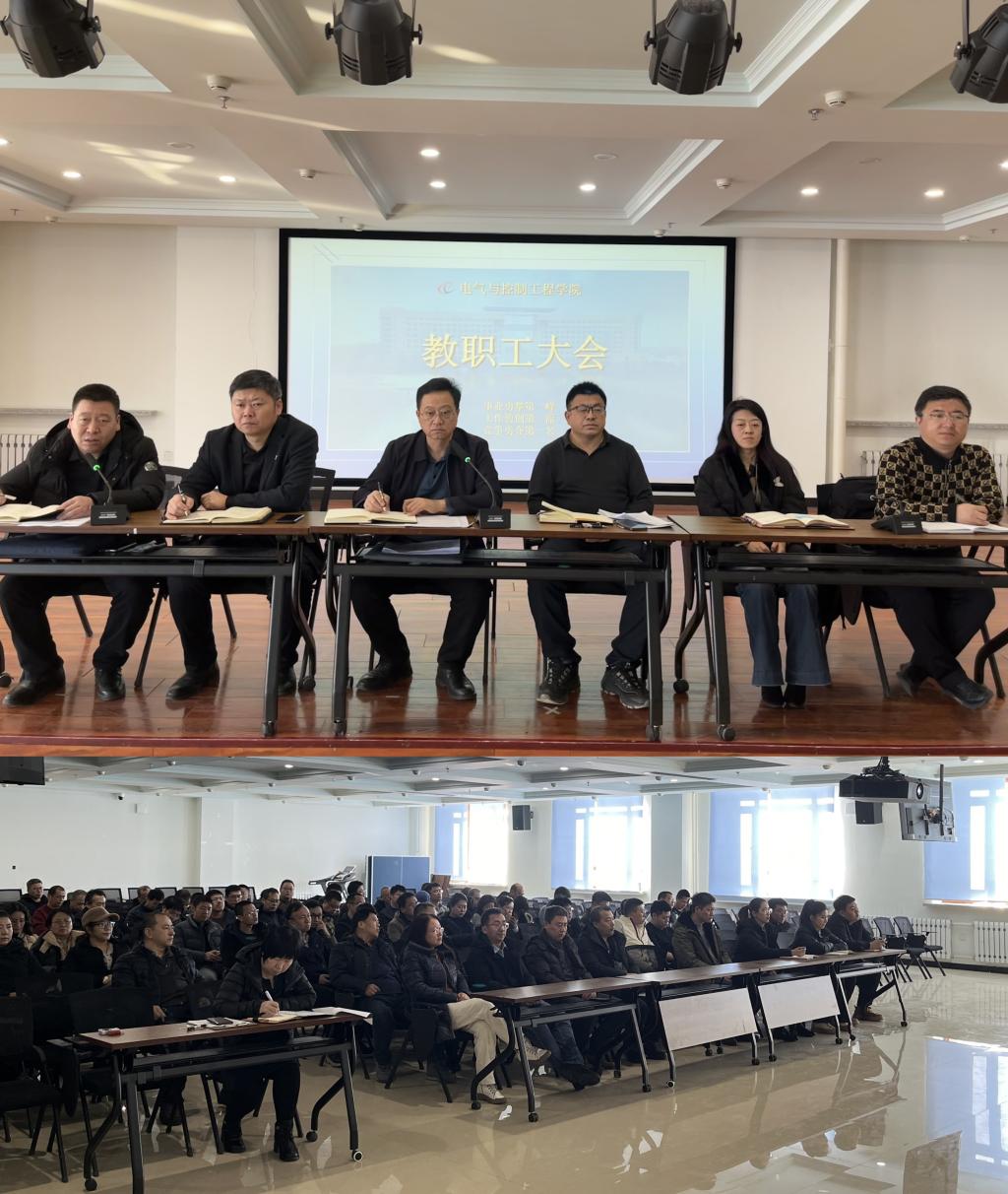 03/ 2025-03开好局领航 谋新篇启航 ——电气与控制工程学院召开新学期启动会议为更好地谋划2025年工作,贯彻落实学校党委二届八次全体会议精神、学校二届二次教职工代表大会暨2025年度工作部署会议精神,动员全体教师以饱满的热情和昂扬的斗志投入新一年的工作,为高质量发展做出更大的贡献,电气与控制工程学院2月28日下午在朝阳楼0239召开了新学期全体教师大会。会议由党委书记李鹏银主持,学院全体教师参加了会议。李鹏银宣布了电气工程及其自动化系和自动化系机构调整及主任、副主任的任免决定。学院副院长李忠勤就新学期教学启动、毕业设计、审核评估整改、专业认证、实验室建...