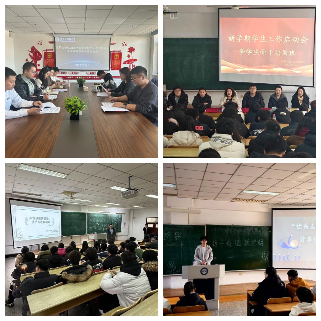 10/ 2025-03计算机学院以“三心”聚“三力”扎实开展新学期学生工作为落实立德树人根本任务,按照学工部下发《关于做好2025年春季学期首月学生教育管理服务重点工作的提示》相关要求,计算机学院以“三心”聚“三力”扎实开展学生工作,为新学期学生工作高质量发展开好局。以学生教育为中心,强化思想导航力。2月26日,学院召开2025年春季学期学生工作研讨会暨新学期学生工作启动会。学院党委副书记张丽媛对新学期学生返校安排作出指导部署并对新学期学生工作提出相关要求;3月1日,学院召开计算...