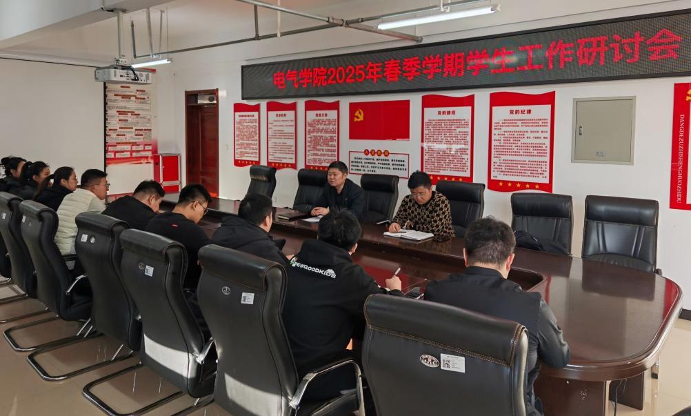 10/ 2025-03电气学院稳步推进2025年春季学期首周教育工作为确保2025春季学期学生工作稳步推进,按照《关于做好2025年春季学期首月学生教育管理服务重点工作的提示》的总体要求,电气学院结合学生工作实际,多角度开展新学期首周教育系列活动。统筹部署,实干担当。2月28日,学院召开2025年春季学期学生工作研讨会。安排部署新学期重点工作,制定首周教育方案,做好团学骨干培训,心理健康教育等重点任务,围绕学院“88336”工作体系,深入研讨并凝练年度“十抓”目标。党委副书记侯树成强调,全体辅导员应聚焦“收心干、精心干、踏实干、合力干、务实干”...