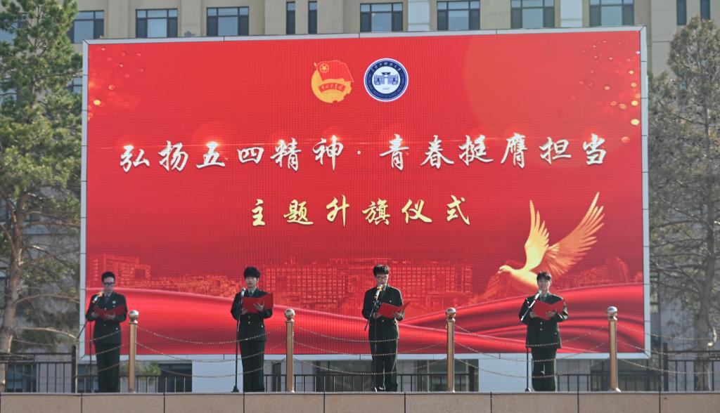 30/ 2025-04【官网】举行“国旗下的思政课”暨纪念五四运动106周年主题升旗仪式为纪念五四运动106周年,弘扬伟大“五四”精神,引导团员青年坚定理想信念、赓续红色血脉、勇担时代重任,4月29日,由校团委主办,机械工程学院团委承办的“国旗下的思政课”暨纪念五四运动106周年主题升旗仪式在体育文化休闲运动场举行。校团委全体成员,机械学院领导、全体辅导员以及500余名青年学生参加了升旗仪式。七点三十分,升旗仪式开始。伴随着激昂的《义勇军进行曲》,五星红旗冉冉升起,全体师生肃立行注目礼,团员青年用坚毅的神情和嘹亮的歌声向祖国深情告白。四名退伍学生代表进行国旗下的演...