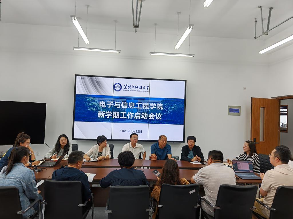 25/ 2025-08电信学院召开新学期工作专题部署会议为确保新学期各项工作平稳有序启动,特别是教学工作和2025级新生报到工作顺利推进,8月22日上午,电信学院在碳谷大厦B座615会议室召开新学期开学工作专题部署会,围绕教学准备、新生报到、服务保障、实验室及办公室改造等重点工作进行全面部署。学院领导班子及学院全体中层干部参加会议。会议由学院党委书记齐秀强主持。会议首先传达了学校2025年秋季学期开学工作会议精神,传达学习了校党委书记周宏力和校长孟上九在会上的讲话精神。会议要求,全体党员干部及全体教职工要统一思想、明确目标、坚定信心...
