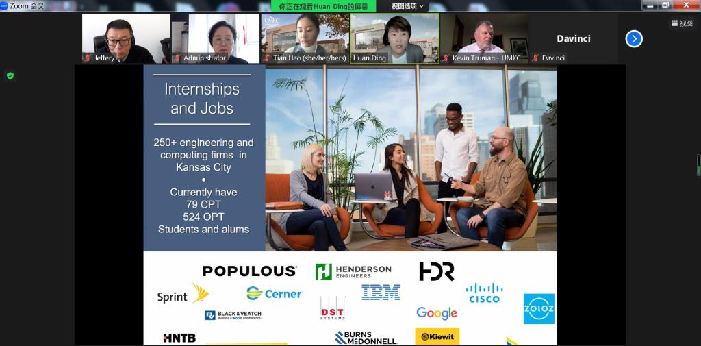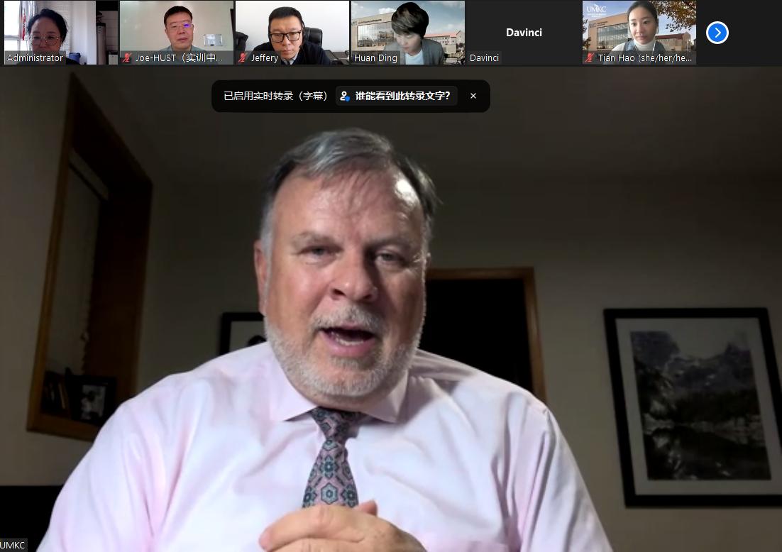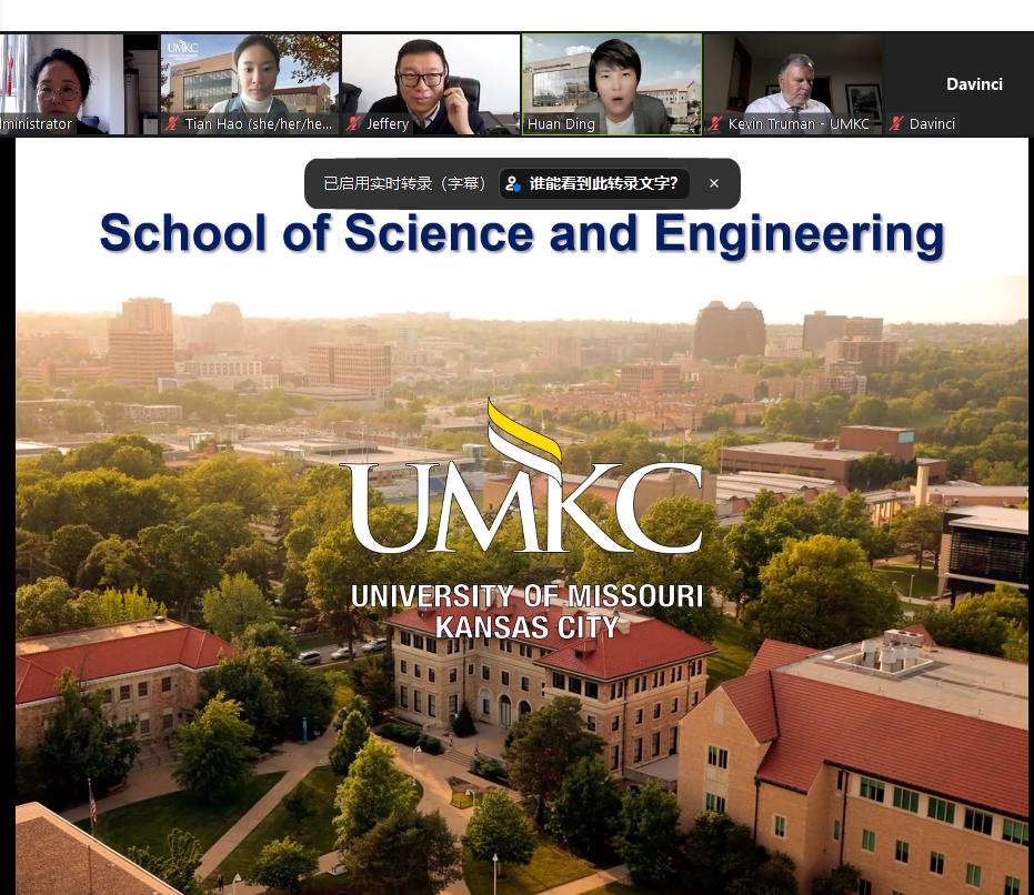 近日,【官网】与美国密苏里大学堪萨斯分校(UMKC)举行线上交流会。【官网】国际交流合作处全体人员与12个学院负责人及4名教师参加了会议,美方由UMKC科学与工程学院院长杜凯文及学院国际事务处主任丁欢参会。
