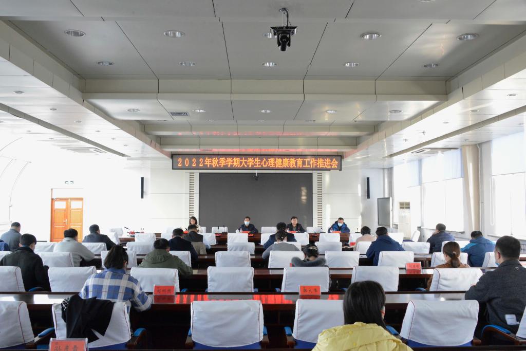 10月31日下午,学校在办公楼6004会议室召开2022年秋季学期大学生心理健康教育工作推进会。校党委副书记桑玉军、各学院分管学生工作副书记、副处级辅导员、学工办主任、心理辅导员以及学生处、心理健康中心有关人员参加会议。会议由学工部(处)长邬承斌主持。