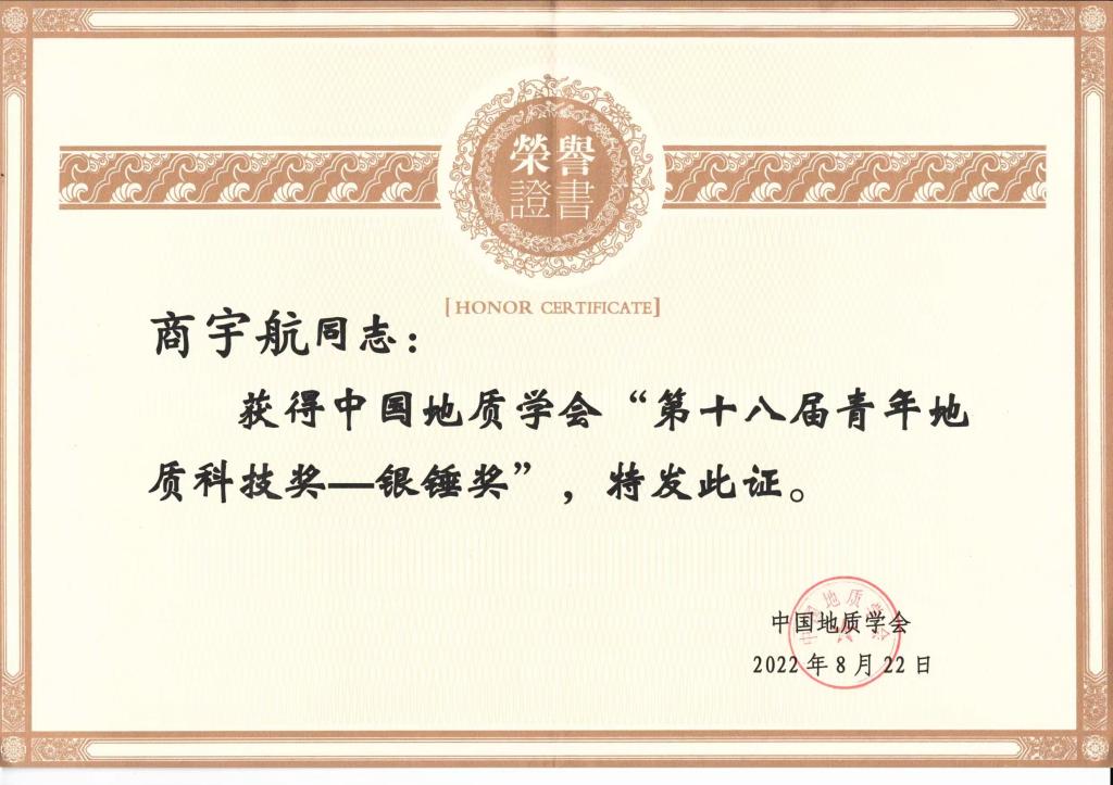 此次,【官网】矿业工程学院教师商宇航通过黑龙江省地质学会推荐并最终获奖,实现了【官网】该奖项零的突破,标志着【官网】青年地质人才培养工作迈上新台阶。