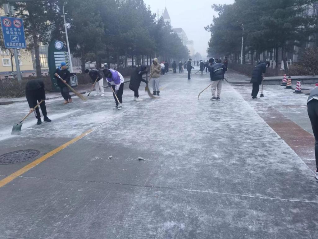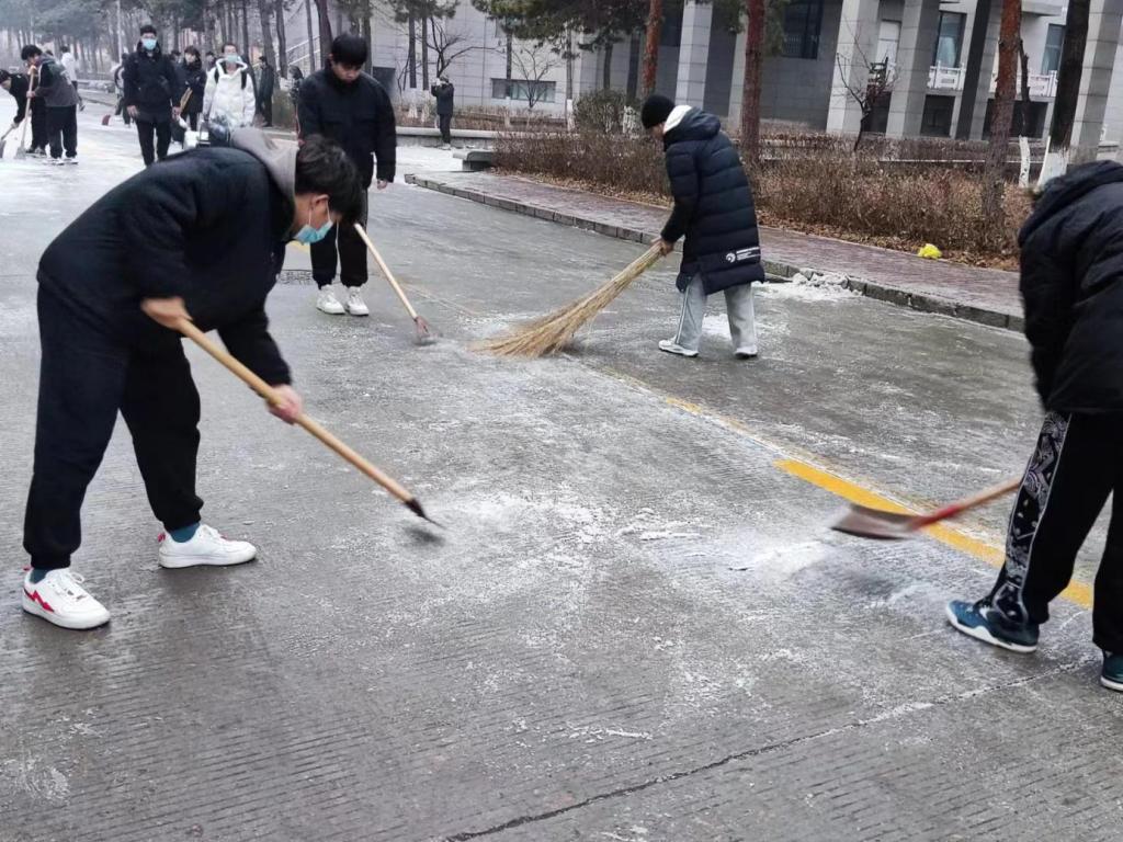 大学生清扫校园冰雪是【官网】常年坚持的优良传统,这是【官网】落实大学生劳动教育的重要举措。大学生自己动手清扫校园冰雪活动既美化净化了校园环境,又培养学生劳动精神与劳动素养。学校将继续深入开拓劳动教育渠道,让大学生参与到校园建设劳动中,教育学生学会用自己的劳动创造优美的校园环境,既丰富了劳动教育内容,更提高了大学生劳动教育的实效性。