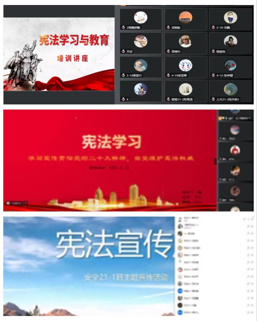 宪法宣传讲起来。安全学院团委、电信学院团委、建工学院团委组织开展了宪法知识系列讲座,通过宣讲,让同学们深刻认识到青年人学习宪法,尊重宪法,捍卫宪法的重要性,认识宪法在治国理政和保障公民基本权利中所起的重要意义,在今后的学习生活中把宪法作为根本的活动准则,维护宪法尊严。