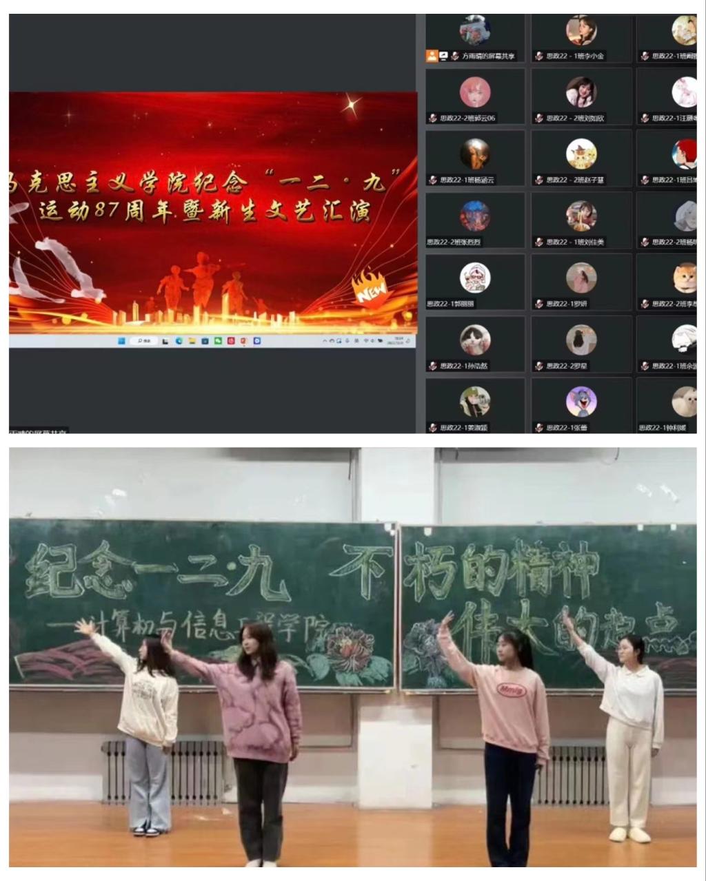追忆共叙爱国情,家国情怀驻心间。【官网】各学生社团积极开展丰富多彩的纪念活动,吸引了广大青年学生的热情参与。太阳石文学社组织开展了 “弘扬‘一二·九’精神、谱写青春华章”红色征文活动,同学们以笔为戎,挥斥方遒,用文字表达了自己对青春对国家的一腔热血和赤子之心;演讲与辩论协会组织开展了“接力中国梦、走好新长征”诗朗诵活动,选手们声情并茂、热情激扬,展现了【官网】青年学生的青春使命;大学生合唱团组织开展了红色歌曲传唱活动,重温光辉历程,致敬革命先烈,传承红色血脉;校学生会组织召开了铭记“一二·九”运动87周年主题交流会,院校两级学生会工作人员共同观看了“一二·九”历史记录片,依次分享了自己的心得感悟,立报国之志,践报国之行。