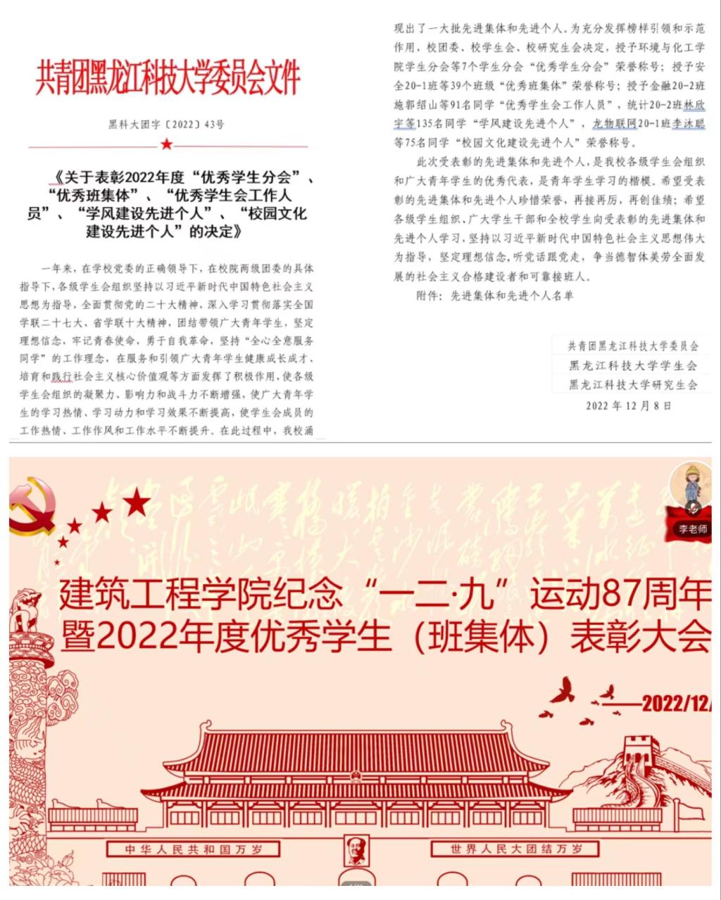 选树榜样立标杆,见贤思齐同进步。校学生会、研究生会聚焦主责主业,以扎实推进学生会组织各项改革工作为抓手,以开展“我为同学做件事”主题实践活动为重点,在全校范围内组织开展了“优秀学生分会”“优秀班集体”“优秀学生会工作人员”等先进集体和先进个人评选活动,选树OD在线青年典型,努力在青年学生中树立见贤思齐、力争上游的价值导向。建工学院团委召开了纪念“一二·九”运动87周年暨2022年度优秀学生(班集体)表彰大会,激励全体学生在今后的学习工作生活中,坚定理想信念,践行初心使命,赓续前行,奋楫争先。