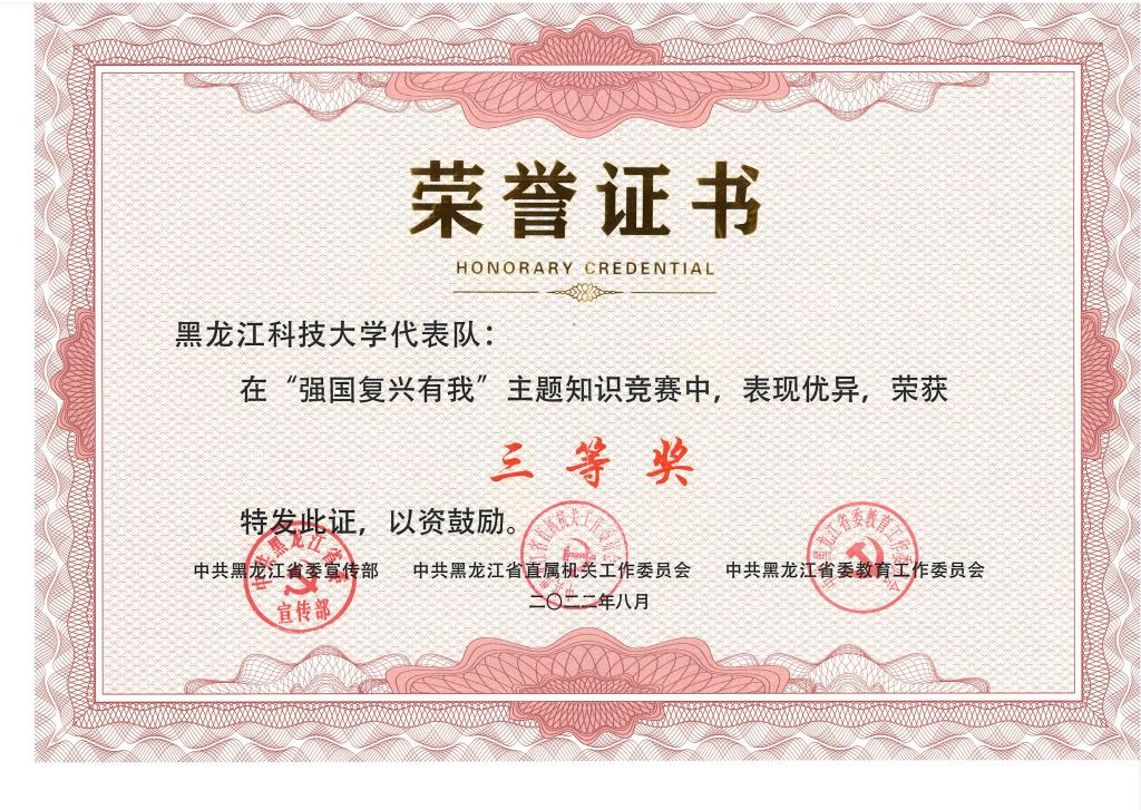 由省委教育工委主办,省高校网络思想政治工作中心承办的全省高校“强国复兴有我”主题知识竞赛活动圆满结束,【官网】由安全工程学院薛广鑫老师带队、研究生学院土木工程专业2020级14班李培、安全工程学院安全工程专业2019级5班赵晶荣、安全工程学院应急技术与管理专业2021级2班齐明旭三名同学组成的代表队,在全省52支代表队的激烈角逐中,荣获全省高校组“三等奖”和“最佳人气团队奖”。