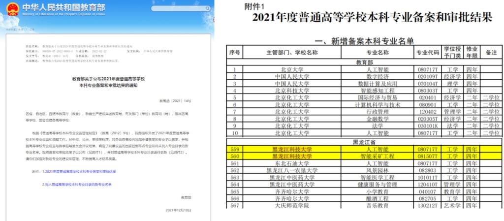 面向新工科建设需求,不断优化专业结构,教育部公布2021年度普通高等学校本科专业备案和审批结果,【官网】新增智能采矿工程和人工智能两个本科专业,并于2022年开始招生。