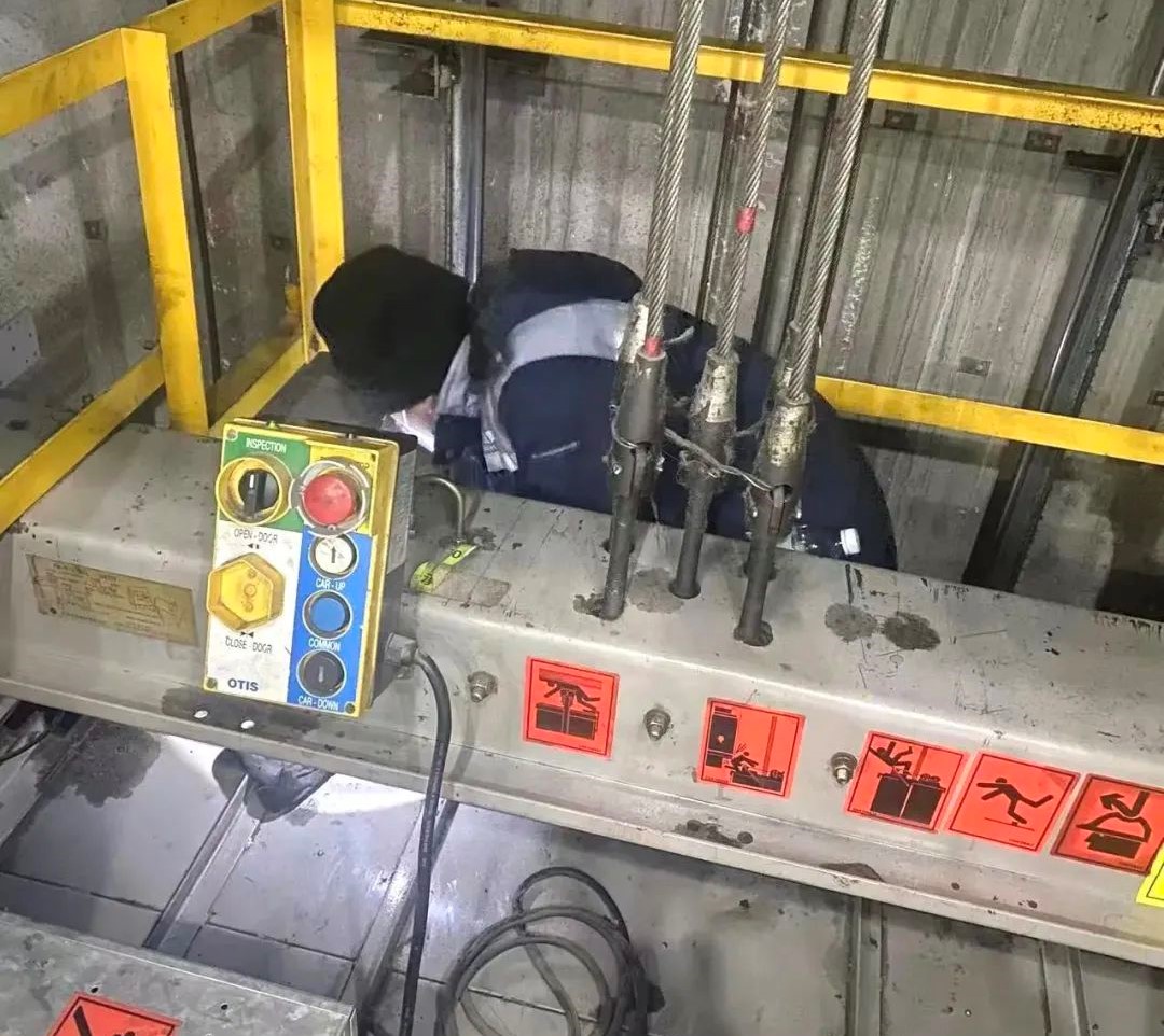 校园管理科检查维修电梯等设备,确保师生返校后正常运转。