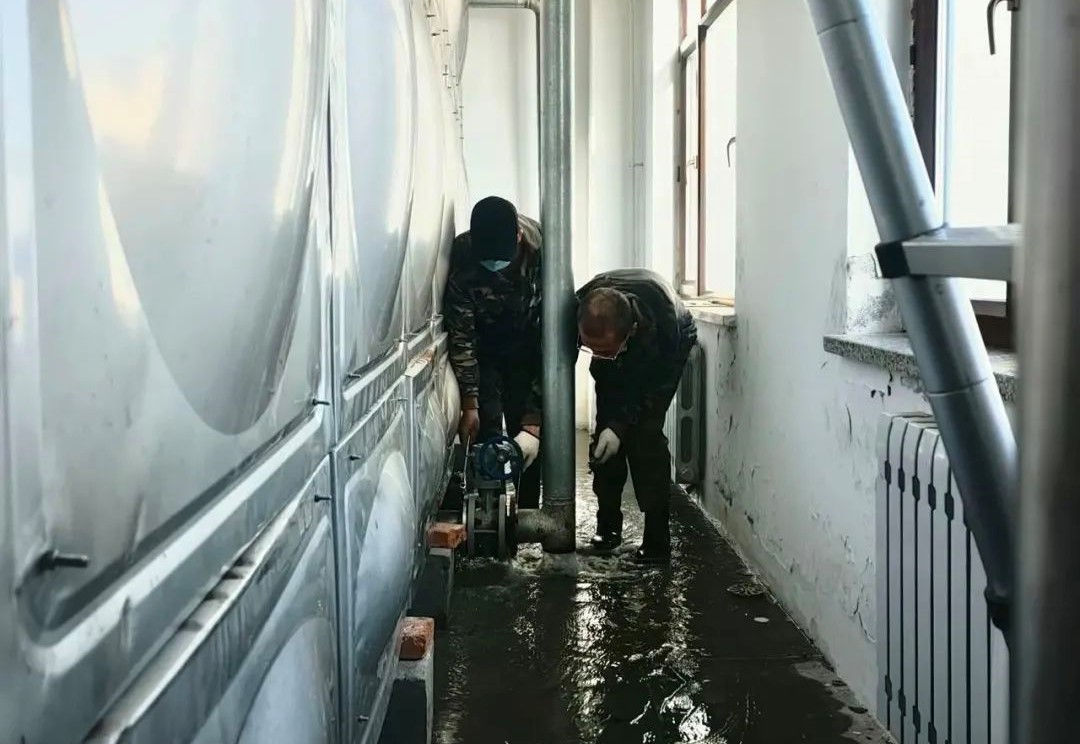 供热中心对浴池水箱进行清理,确保学生返校后日常洗浴保障。
