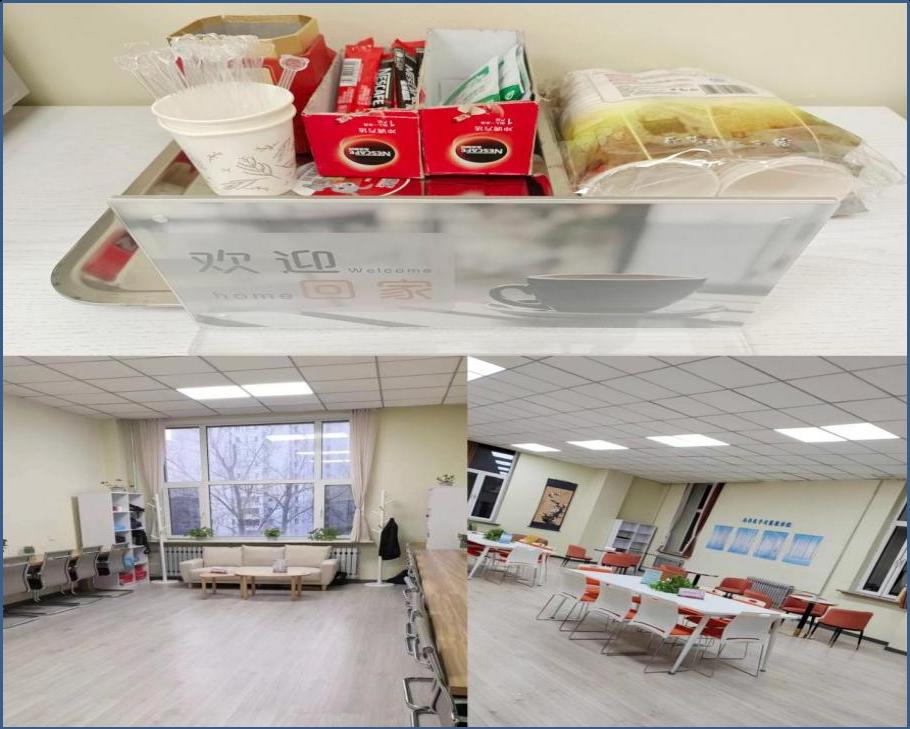四是确保教师休息室服务到位。完成教学周历展示栏和作息时间表更换,为教师贴心备好纸杯、纸抽、咖啡、奶粉、喉宝等,干净整洁、温馨舒适的休息环境,静待各位老师的归来。