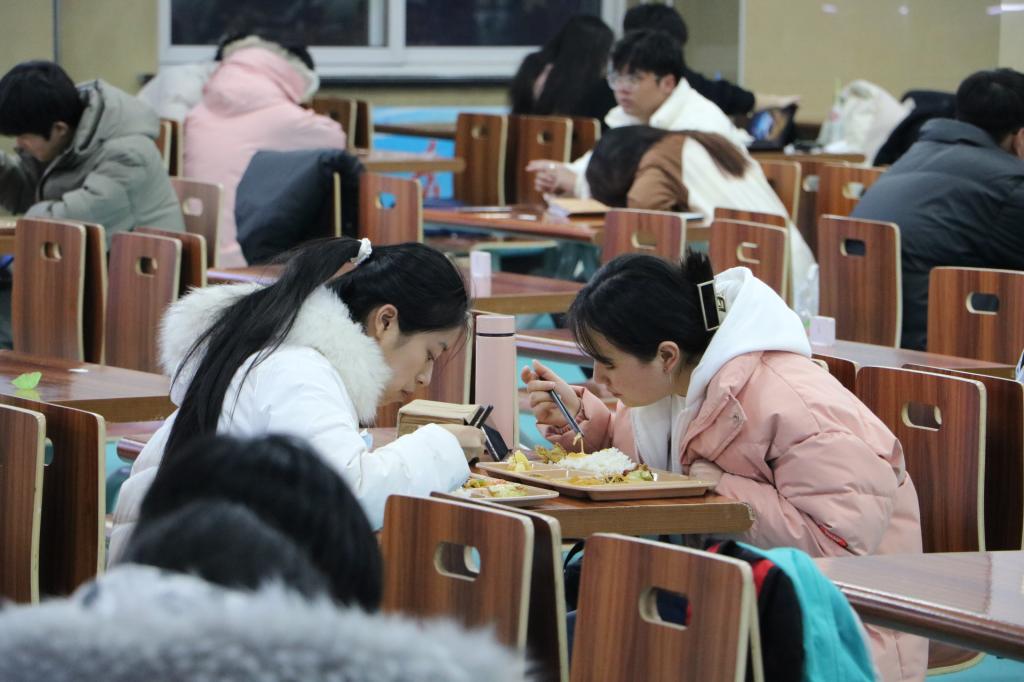 下课铃响起,同学们结伴来到食堂,有序就餐。
