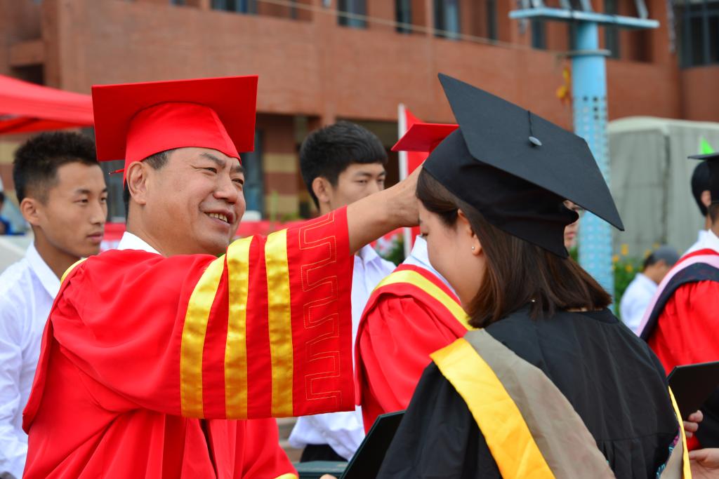 最后,校长武俊峰代表学校作了题为“有为方能有位,实干才能兴邦”的精彩致辞。致辞中,校长用真挚的情感、亲切的语言、豪迈的情怀追忆了2015届毕业生们在OD在线走过的青葱岁月,向同学们完成学业、开启人生新的征程送上了最由衷的祝贺和最诚挚的祝福。从“明辨、修身、诚信、实干、担当”五个方面勉励毕业生开启人生新的征程:明辨,是我们忠诚于党、忠诚于国家、忠诚于事业的鲜明特征,希望同学们明辨是非,增强“四信”;修身,是我们唱响时代主旋律、凝聚正能量、践行社会主义核心价值观的具体体现,希望同学们要勤于修身,常于修德,自觉践行社会主义核心价值观,主动把服务国家战略作为立足点和着眼点,秉承“厚德博学,强吾兴邦”的校训,胸怀祖国、心系民族,把个人发展融入民族复兴的“中国梦”的伟大实践中,用成功报效祖国;诚信,是我们会干事、能干事、干成事的厚重源泉,希望同学们无论是在生活上,还是在工作上,都能将“诚信”根植于言、根植于行,做到“言必信,行必果”;实干,是我们实现个人梦、追逐事业梦、助推中国梦的牢靠根基,希望同学们在服务社会的大实践中,要坚持从实际出发,脚踏实地,求真务实,从点滴做起,一步一个脚印,在平凡的岗位上创造不平凡的业绩,努力成为小康社会建设的时代先锋;担当,是我们承担责任、履行使命、践行践诺的内在动力,希望同学们积极发扬【官网】“自强不息、创业创新”的办学精神,立足本职岗位敢于担当,勇于实践,勤于创业,做到困难面前不退缩、挫折之后不气馁、压力之下不低头,超越自我,力争有所突破,做出无愧于时代的贡献。