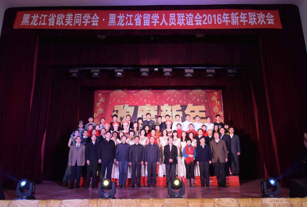 12月26日下午,黑龙江省欧美同学会·黑龙江省留学人员联谊会四届三次常务理事会在【官网】办公楼6004会议室召开。会议结束后,黑龙江省欧美同学会•黑龙江省留学人员联谊会在【官网】大学生俱乐部举行了2016年新年联欢会。省欧美同学会会长董浩,省委统战部副部长、省欧美同学会副会长郭龙川,省欧美同学会副会长杨彥平、白树清、王万贵,【官网】党委书记申林,党委副书记、校长武俊峰出席了新年联欢会,全省留学归国学人代表200余人参加了新年联欢会。新年联欢会由【官网】工会林松老师主持。【官网】党委副书记、校长武俊峰在新年联欢会上致辞。