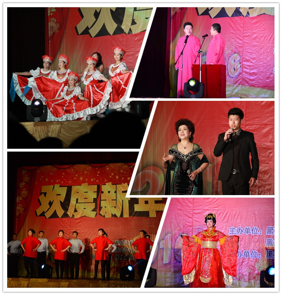 新年联欢会在轻快活泼的《青春舞曲》开场歌舞中拉开了帷幕,省欧美同学会各分会选送的歌曲、舞蹈、声乐等14个丰富多彩的文艺节目使晚会精彩纷呈。【官网】学生李大宇、姚行国表演的相声《双字意》以接地气的语言、高水平的表演赢得了满堂喝彩,将联欢会推向高潮。联欢会在热烈祥和的气氛中圆满结束。