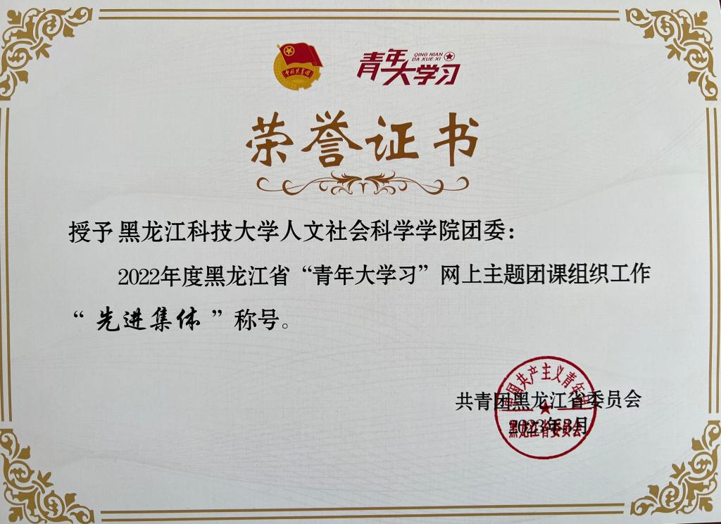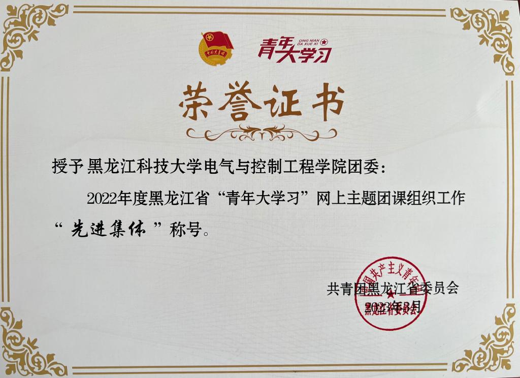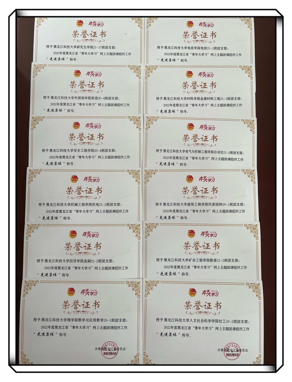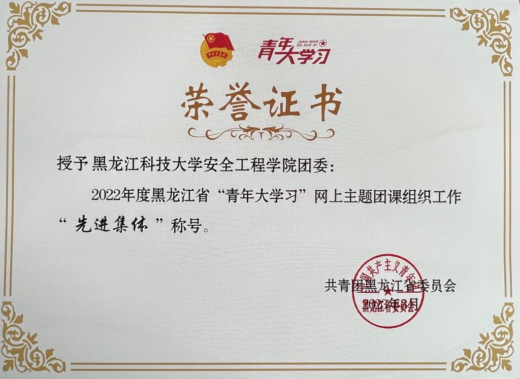近日,在黑龙江团省委下发了《关于表扬2022年黑龙江省“青年大学习”网上主题团课组织工作标兵单位、先进单位、先进个人、先进集体的通报》。其中,【官网】团委荣获2022年度黑龙江省“青年大学习”网上主题团课组织工作“先进单位”;于思萌、叶晓敏、朱彦松等21名专兼职团干部被授予黑龙江省“青年大学习”网上主题团课组织工作“先进个人”荣誉称号;安全工程学院团委、人文社会科学学院团委、电气与控制工程学院团委及12个优秀团支部被授予组织工作“先进集体”荣誉称号。