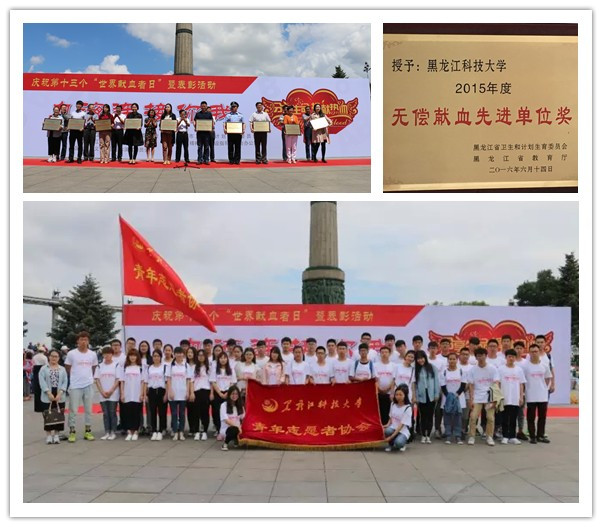 6月14日,在“第13个世界献血者日”来临之际,由黑龙江省卫生和计划生育委员会、黑龙江省教育厅等共同主办的“第13个献血日暨2015年黑龙江省先进献血单位表彰活动”在防洪纪念塔隆重举行。【官网】作为全省各条战线40家获奖单位和团体之一参加了此次活动,并荣获2015年度“无偿献血先进单位”荣誉称号。